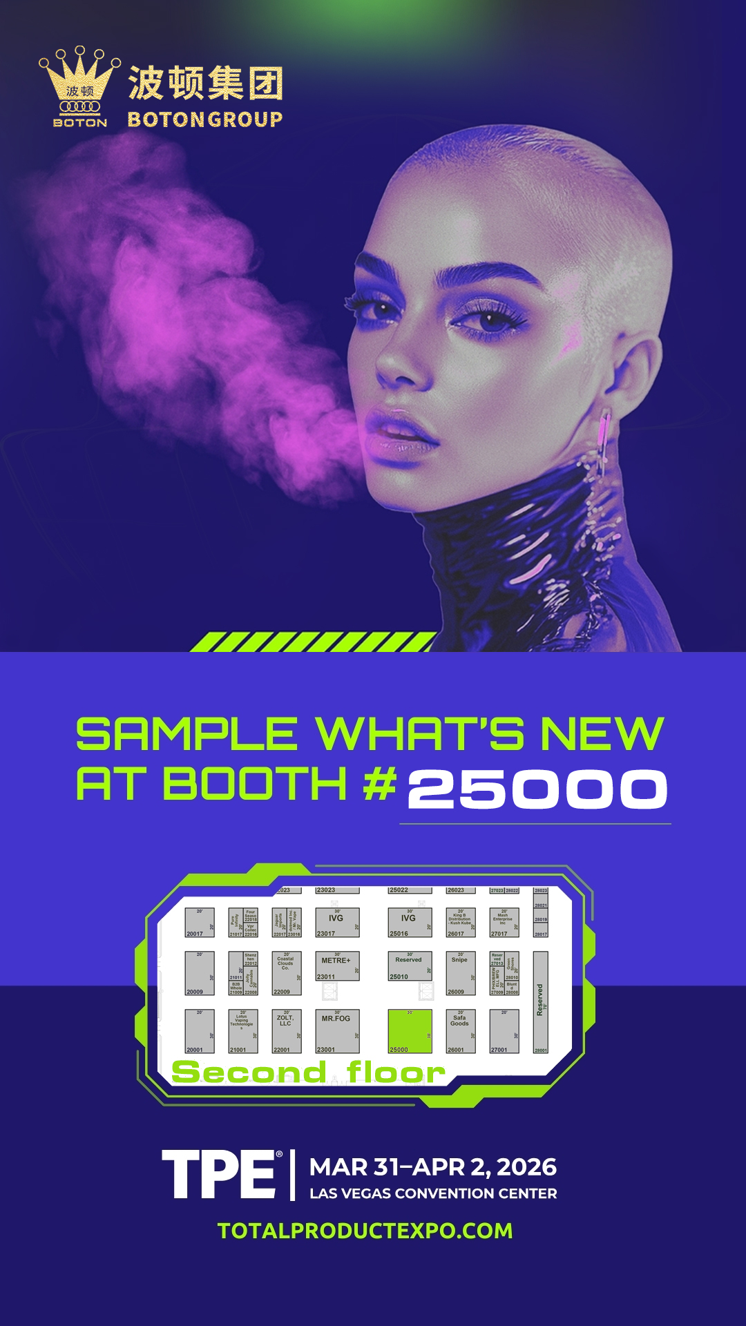TPE展會是全球霧化行業最具影響力的盛會之一,每年吸引來自世界各地的品牌商、分銷商、零售商及行業專家齊聚拉斯維加斯。波頓集團此次高調參展,正是看中北美市場的巨大潛力,以及TPE平臺帶來的全球資源整合機會。我們將以“科技驅動、全鏈協同”為主題,向世界傳遞中國企業的創新力量。從深圳到拉斯維加斯,波頓正以昂揚姿態,開啟全球化新征程。